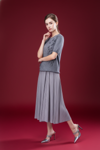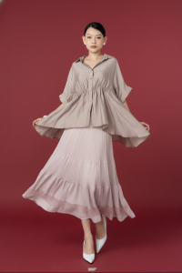 Chọn 1 set cơ bản: áo dập ly + chân váy cùng chất liệu.
