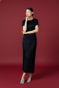 Chất liệu đặc trưng của Pleats Kora: lụa mềm, dập ly rủ, bay.